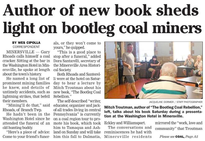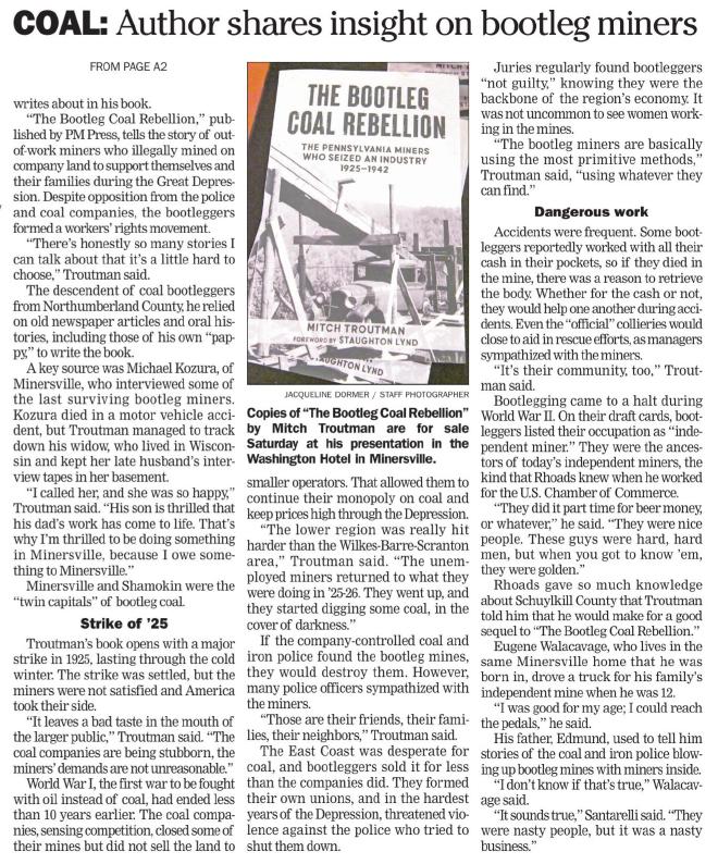 - “Author of new book sheds light on bootleg miners during talk in Minersville”